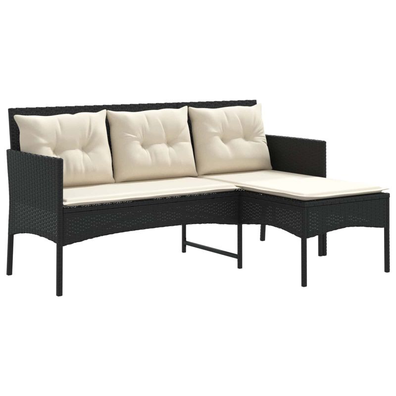 Градински Софа Комплект 2 pcs Черен и кремав полиратан