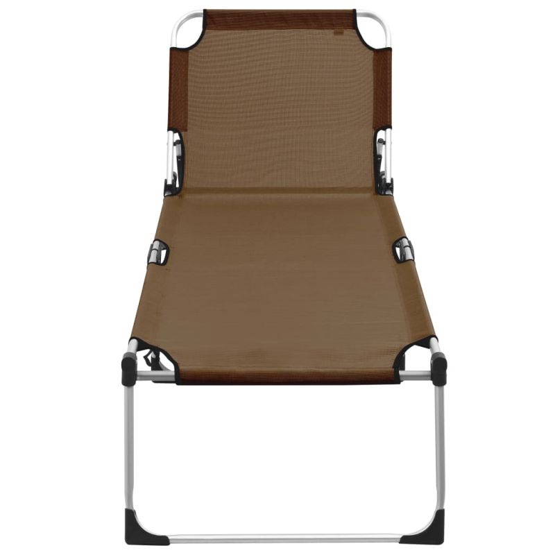 Изключително висок сгъваем шезлонг за възрастни кафяв алуминий