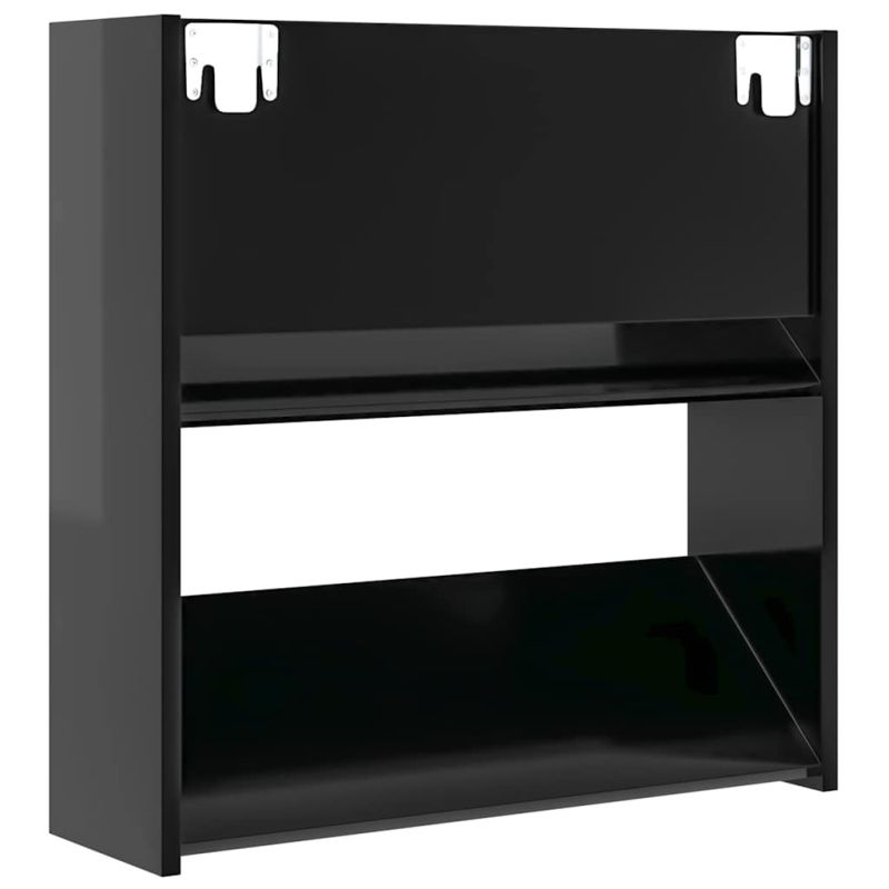 Шкаф за обувки, черен гланц, 60x18x60 см, инженерно дърво