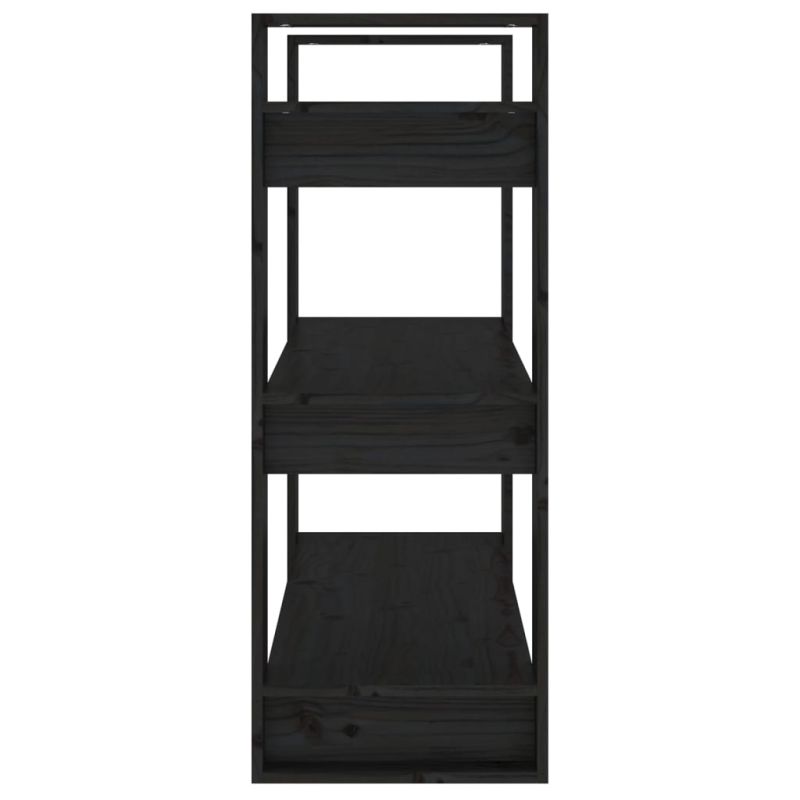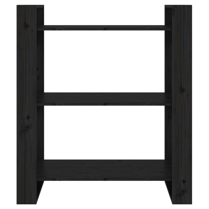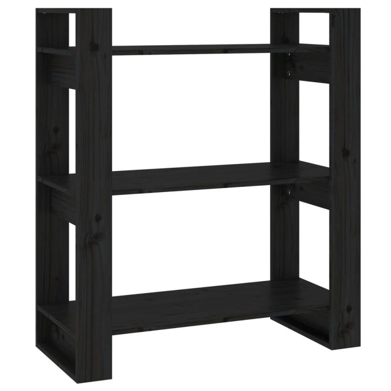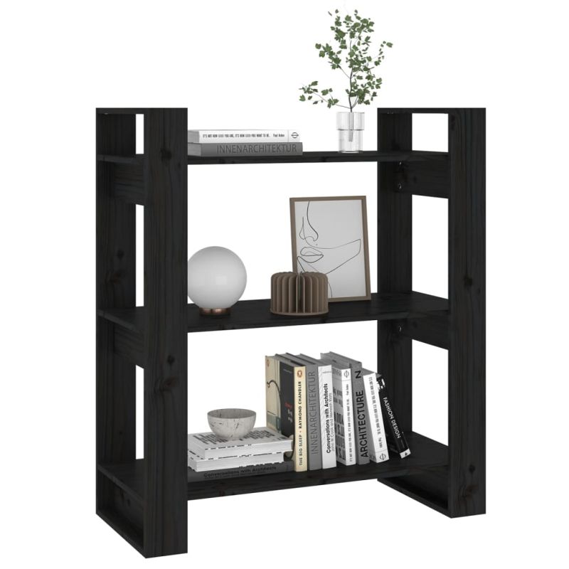 Библиотека/разделител за стая, черна, 80x35x91 см, бор масив