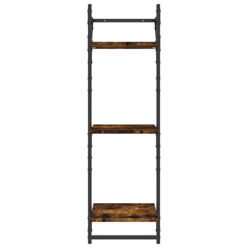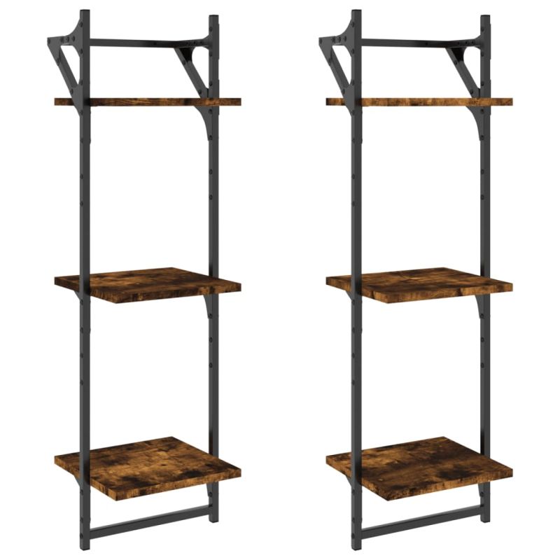 Триетажни стенни рафтове с пръти 2 бр опушен дъб 30x25x100 см