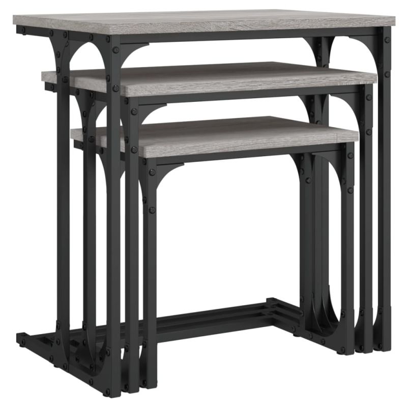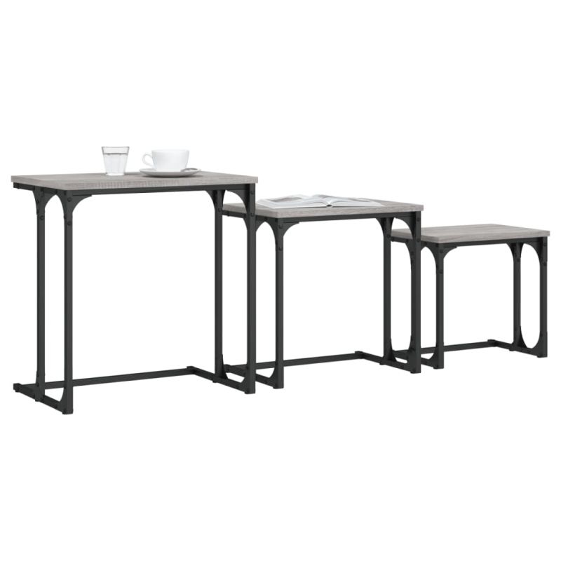 Стифиращи кафе маси, 3 бр, сив сонома, инженерно дърво