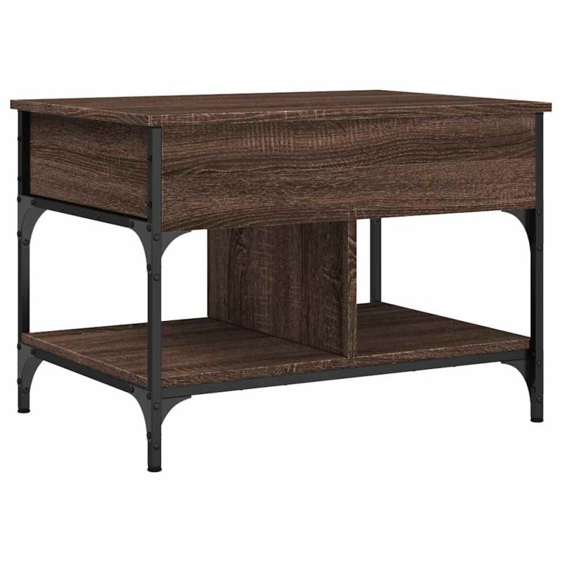 Кафе маса, кафяв дъб, 70x50x50 см, инженерно дърво и метал