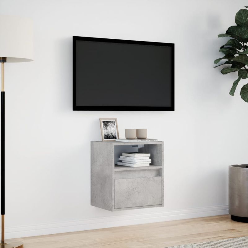 Стенен ТВ шкаф с LED осветление, бетонно сив, 41x31x45 см