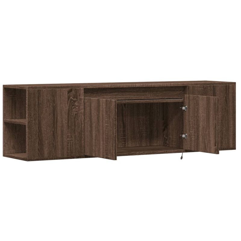 Стенен ТВ шкаф с LED осветление, кафяв дъб, 135x31x39,5 см