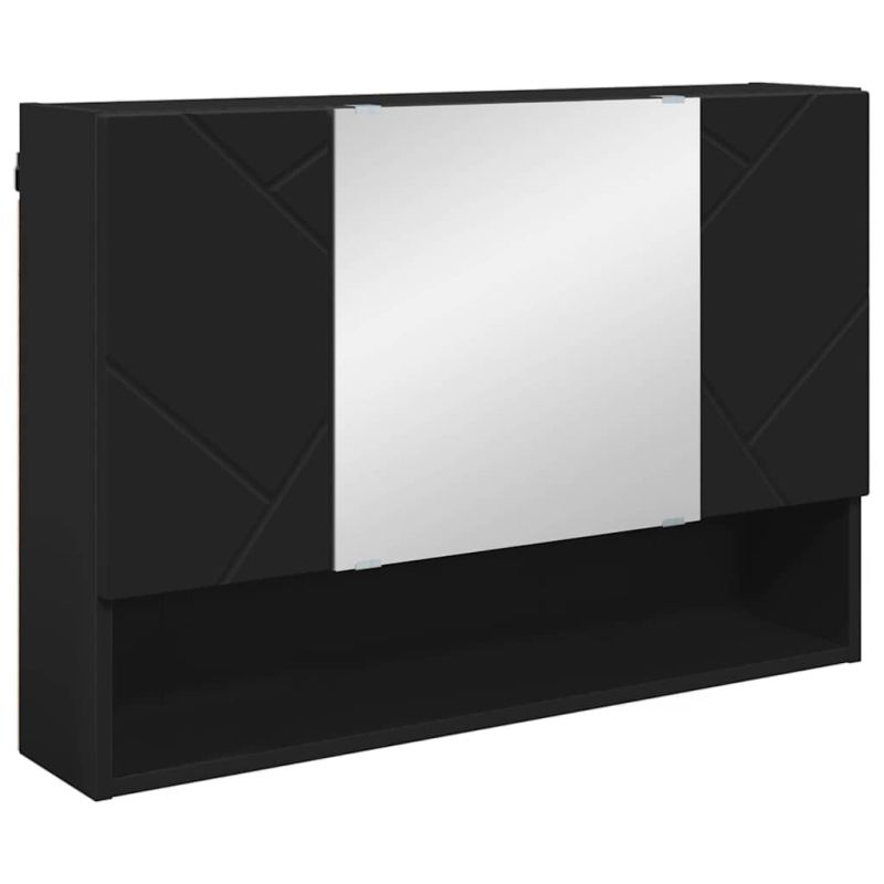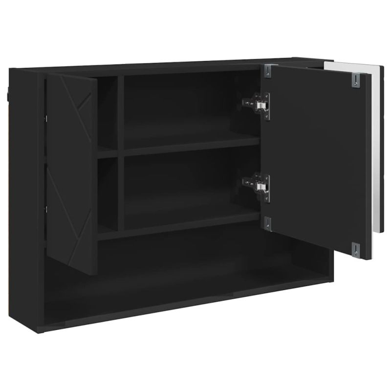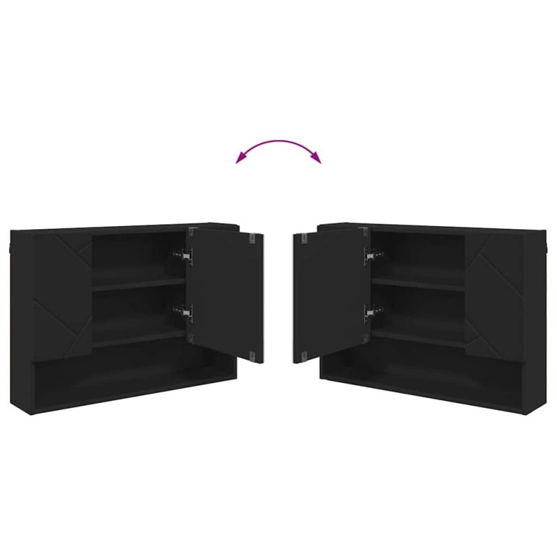 Шкаф с огледало с врата Черно 80 x 17 x 55 см Инженерно дърво