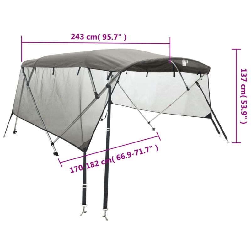 Тента за лодка с 4 дъги мрежести страници 243x(170-182)x137 см