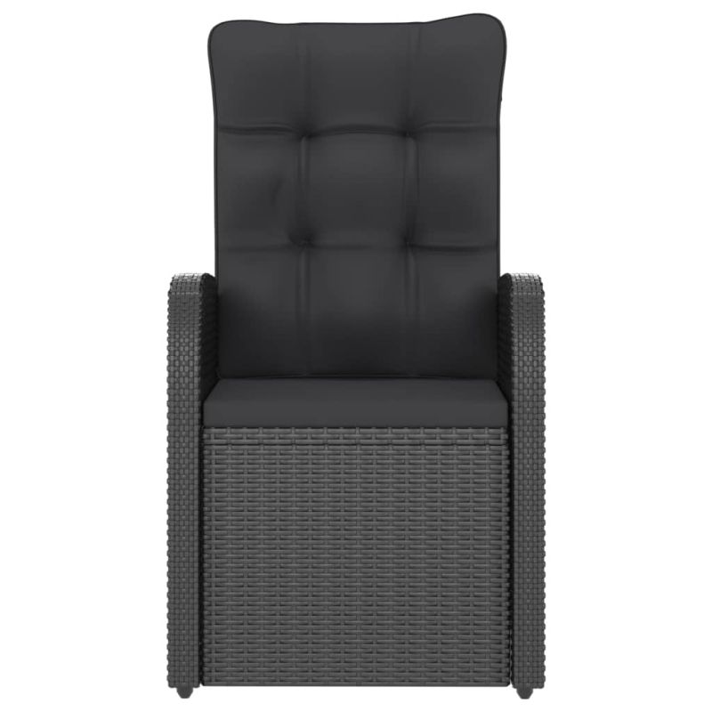 Този комплект за хранене на открито, с елегантен и съвременен дизайн, е привлекателно допълнение към вашето външно жилищно пространство. Комплектът градински мебели има здрава прахово боядисана стоманена рамка, която е много стабилна и издръжлива. PE ратанът прави трапезния комплект лесен за почистване, устойчив и подходящ за ежедневна употреба на открито. Стъкленият плот на масата също се почиства лесно с влажна кърпа. Накланящите се столове предлагат пълен комфорт при седене и страхотна опора. Облегалката може да се регулира лесно според желанието ви с помощта на страничния бутон. При това плътните и меки възглавници за облягане са също изключително удобни. Забележка: Препоръчваме да покривате комплекта при дъжд, сняг и скреж за удължен експоатационен живот. Максимално 110 кг на седалка. Съобразете се с риска от открит огън и други източници на силна топлина в близост до продукта.