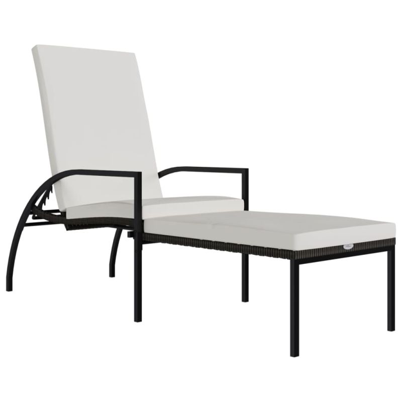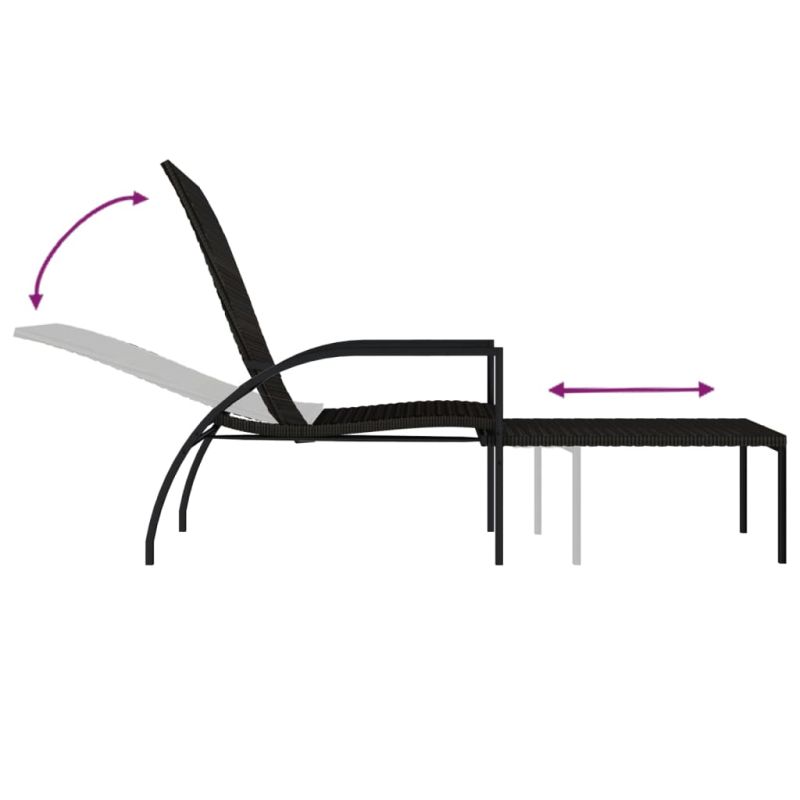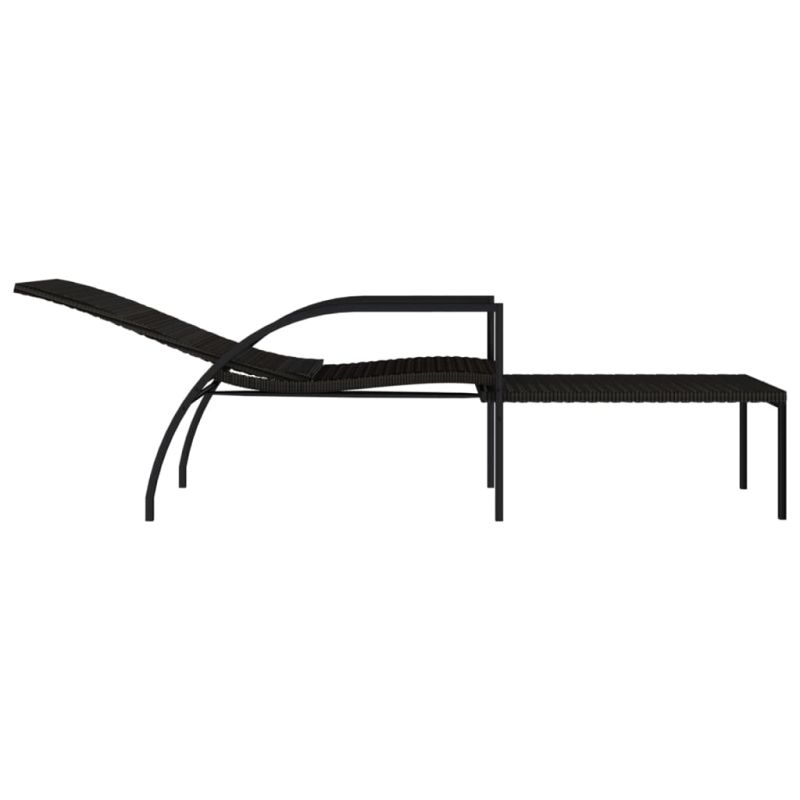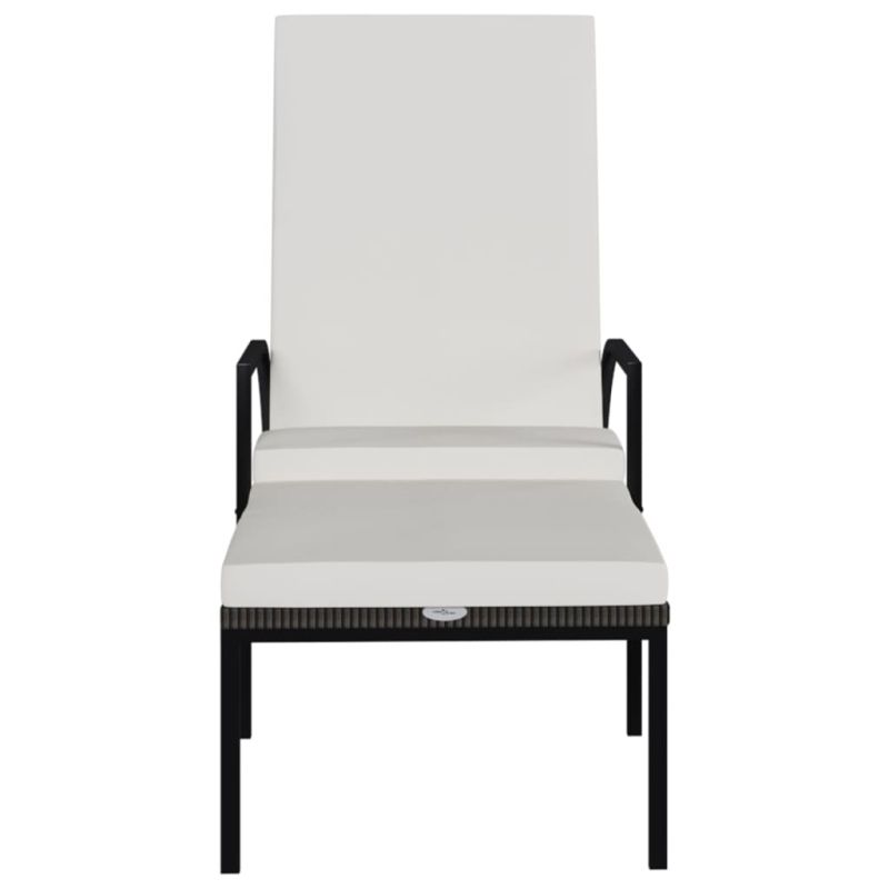 Шезлонг с поставка за крака, PE ратан, кафяв