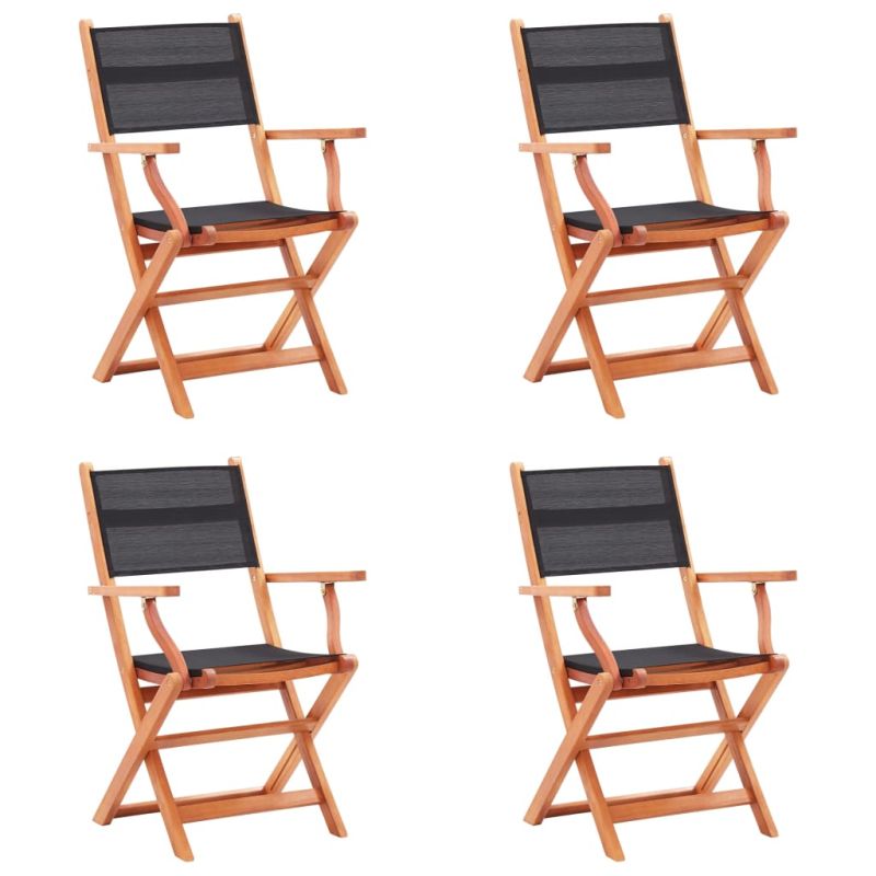Сгъваеми градински столове 4 бр черни евкалипт масив textilene