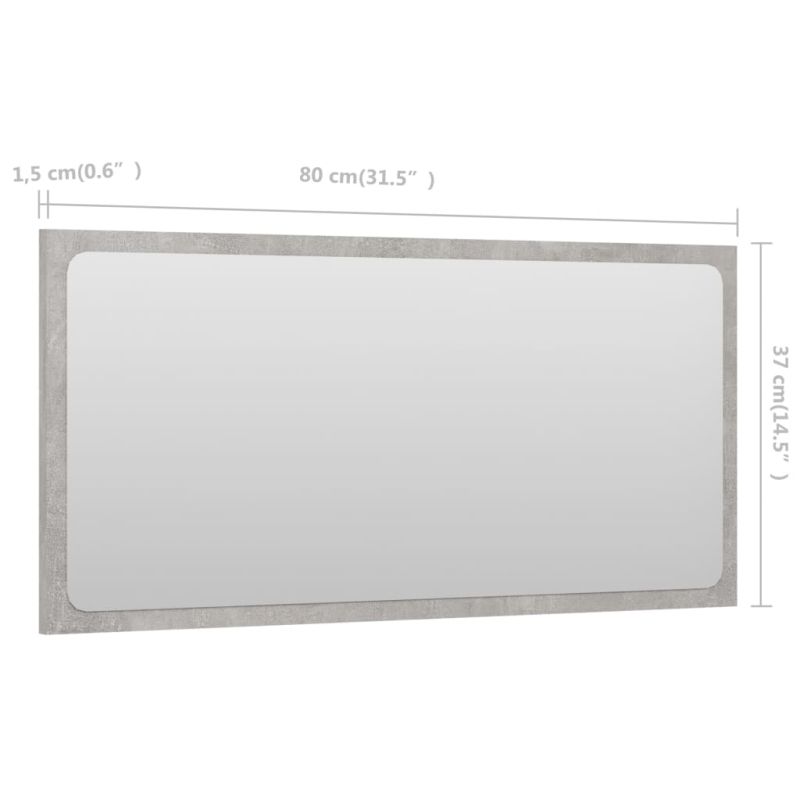 Огледало за баня, бетонно сиво, 80x1,5x37 см, ПДЧ
