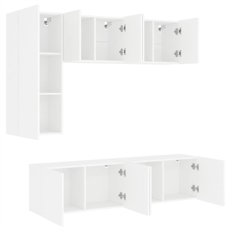ТВ стенни модули, 5 части, бели, инженерно дърво