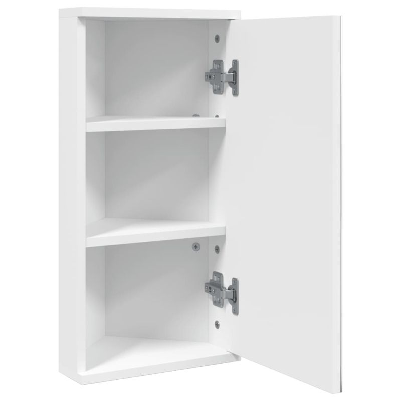 Ъглов шкаф с огледало за баня бял 30x24x60 см