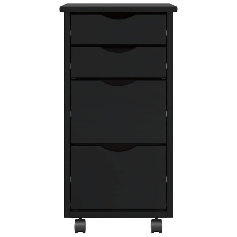 Подвижен шкаф с чекмеджета "MOSS" Черно масивно дърво бор