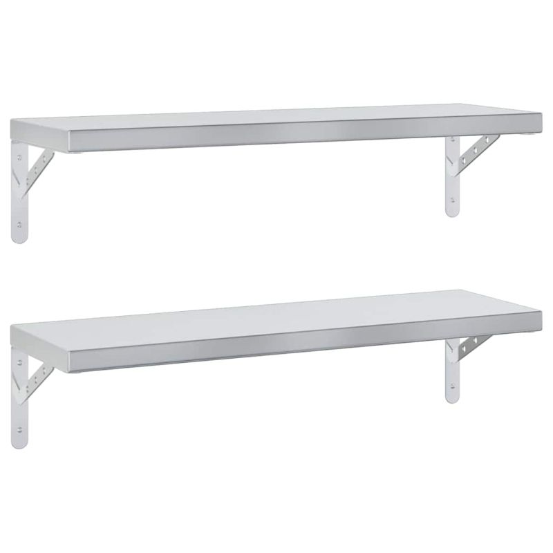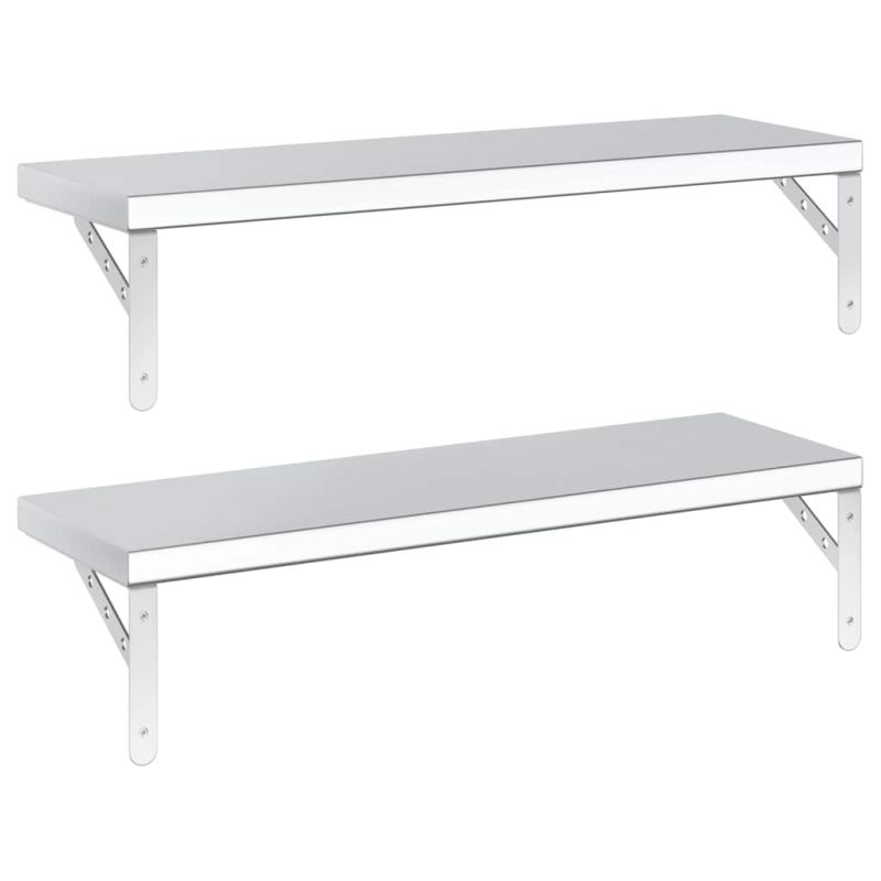 Стенни рафтове 2 бр 75x23,5 см сребристи неръждаема стомана