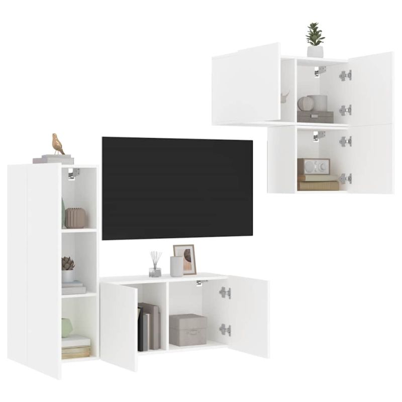 ТВ стенни модули, 4 части, бели, инженерно дърво