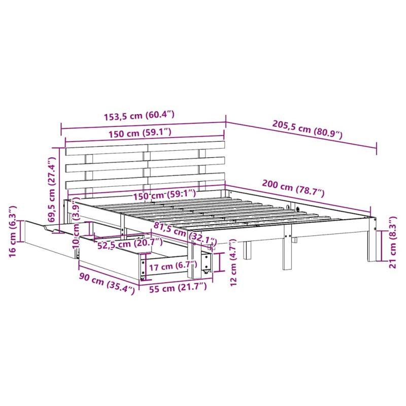 Насладете се на по-спокоен нощен сън с тази рамка за легло! Тя е приветливо допълнение към всяка спалня. Стабилна и дълготрайна рамка: Масивната борова дървесина е известна със своята здравина и издръжливост. Правите ѝ шарки и отличителните чепове допринасят за рустикалния ѝ чар.Летъчна основа за оптимална опора: Рамката на леглото е оборудвана с летъчна основа за опора и дишане на матрака.Допълнително място за съхранение: Тази основа за легло разполага с две чекмеджета отдолу, осигуряващи място за съхранение на предмети като допълнително спално бельо, сезонни дрехи и играчки.Лесна маневреност: Това чекмедже за съхранение под леглото разполага с четири колела, осигуряващи плавна и лесна маневреност за плъзгане и излизане от под леглото. Полезно е да знаете:Тази рамка за легло е с летъчна основа и включва ламели.Матракът не е включен в комплекта на това легло. Предлагаме разнообразен избор от матраци. Можете да разгледате нашия магазин за подходящ матрак.
