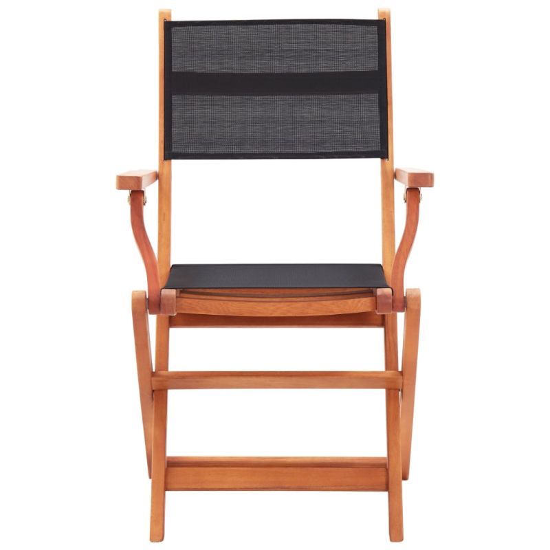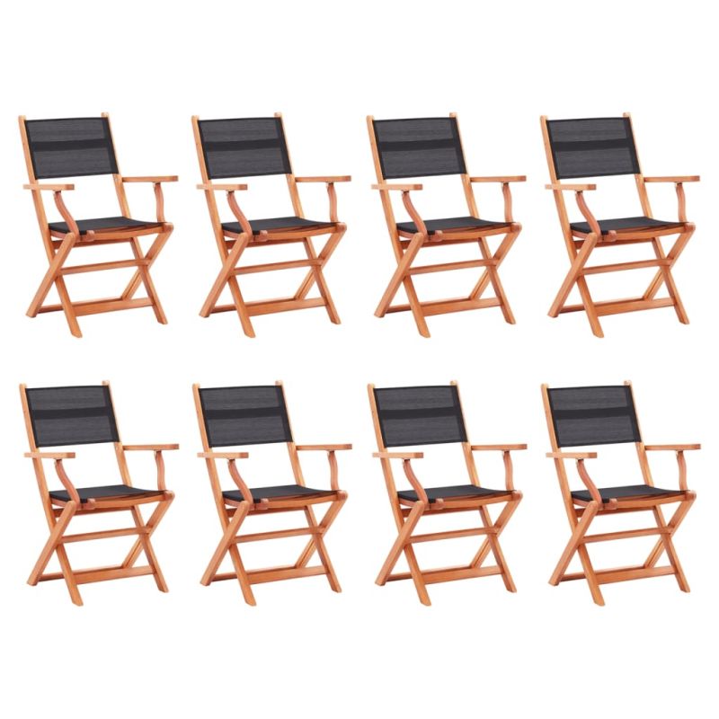 Сгъваеми градински столове 8 бр черни евкалипт масив textilene