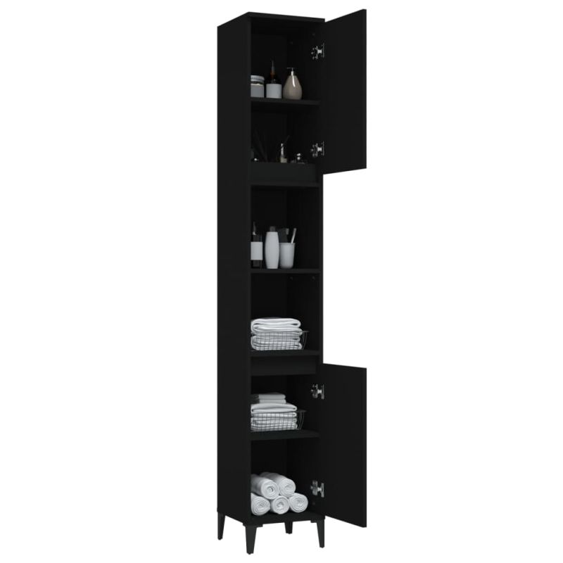 Шкаф за баня, черен, 30x30x190 см, инженерно дърво