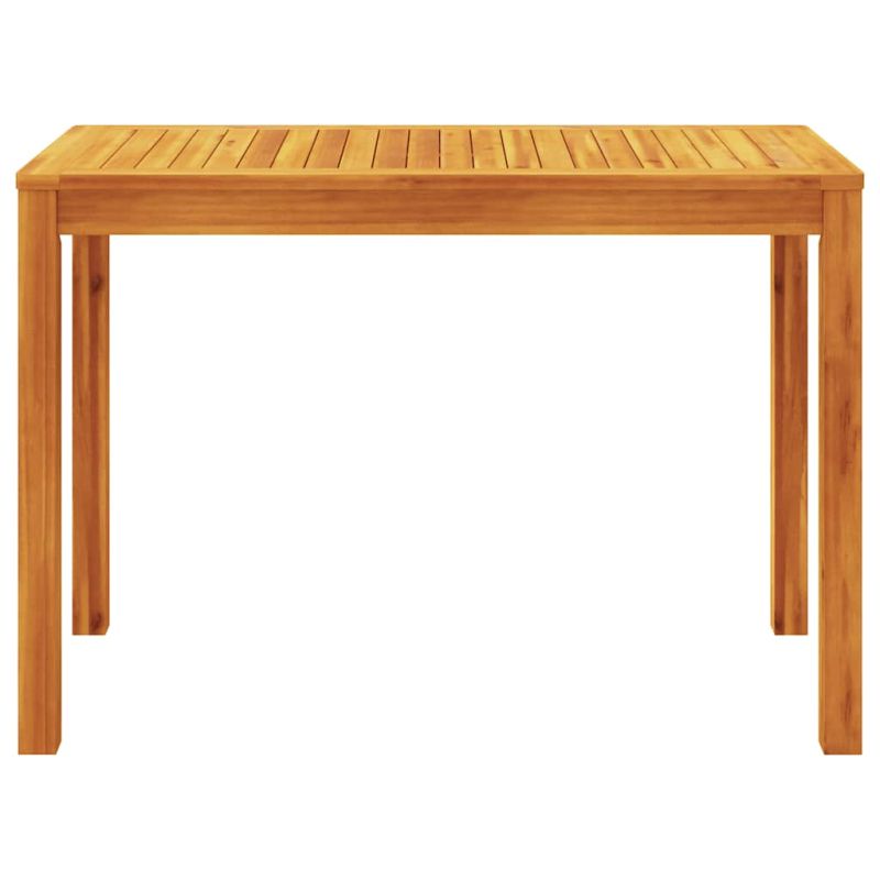Този дървен градински трапезен комплект е чудесен избор за вечеря на открито или просто за почивка в градината, задния двор или вътрешния двор. Масивна акациева дървесина: Масивното акациево дърво е красив естествен материал. Акациевото дърво е тропическа твърда дървесина, която е плътна, здрава и издръжлива.Сгъваема функция: Трапезните столове за открито могат да се сгъват, за да спестят място, когато не се използват.Вентилиран: Този трапезен комплект за тераса с дизайн на ламели може да позволи на водата да тече, което не позволява лесно гниене и има дълъг експлоатационен живот.Стабилен плот: Стабилният плот на трапезната маса е идеален за поставяне на вашето питие или всяка друга необходимост, от която се нуждаете.Лесна за почистване повърхност: Покритата с масло повърхност прави тези градински трапезни мебели лесни за почистване с влажна кърпа. Добре е да се знае:За да сте сигурни, че вашите външни мебели ще останат красиви, ви препоръчваме да ги защитите с водоустойчиво покривало. Максимално 110 кг на седалка.