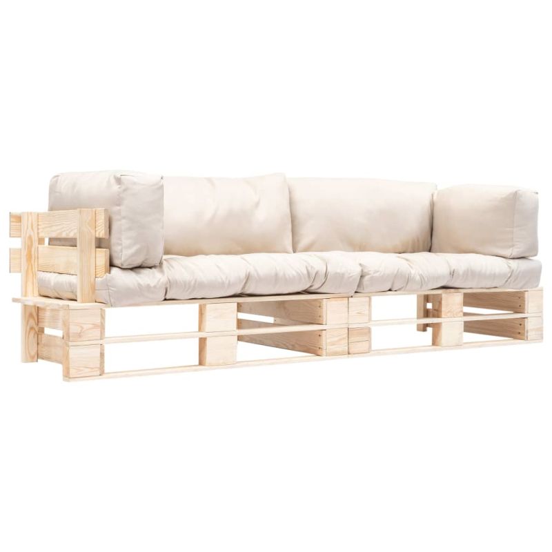 Нашият градински диван от палети ще бъде идеален избор за вас да се отпуснете и да се насладите на времето, да подремнете или да поговорите със семейството или приятелите си. С непреходен палетен дизайн дървеният лаундж комплект добавя нотка на рустик чар към вашия вътрешен двор, градина или всекидневна. Изработен от импрегнирана борова дървесина, външният лаундж комплект е издръжлив и устойчив на атмосферни влияния. Този комплект патио дивани се отличава със здрава конструкция и изисква малко поддръжка. Доставян с меки, дебело подплатени възглавници, нашият лаундж комплект мебели ще осигури максимален комфорт. Доставката включва два 2-местни дивана с подвижни възглавници за седалка и облегалка. Комплектът градински мебели се сглобява лесно. Моля, имайте предвид, че дървото е естествен материал и може да има несъвършенства.