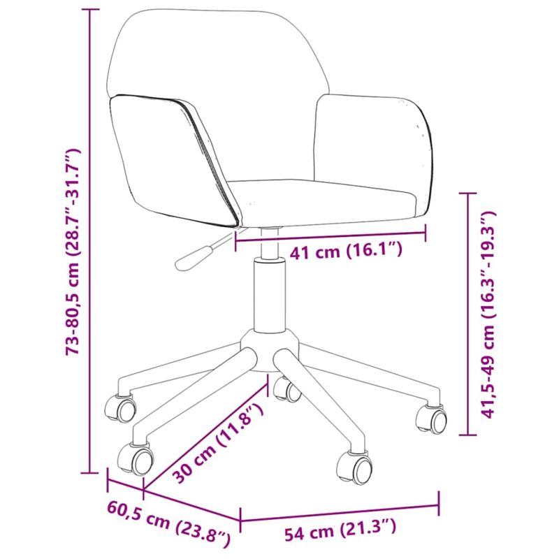 • Общи размери: 54 x 60,5 x (73 - 80,5) см (Ш x Д x В)