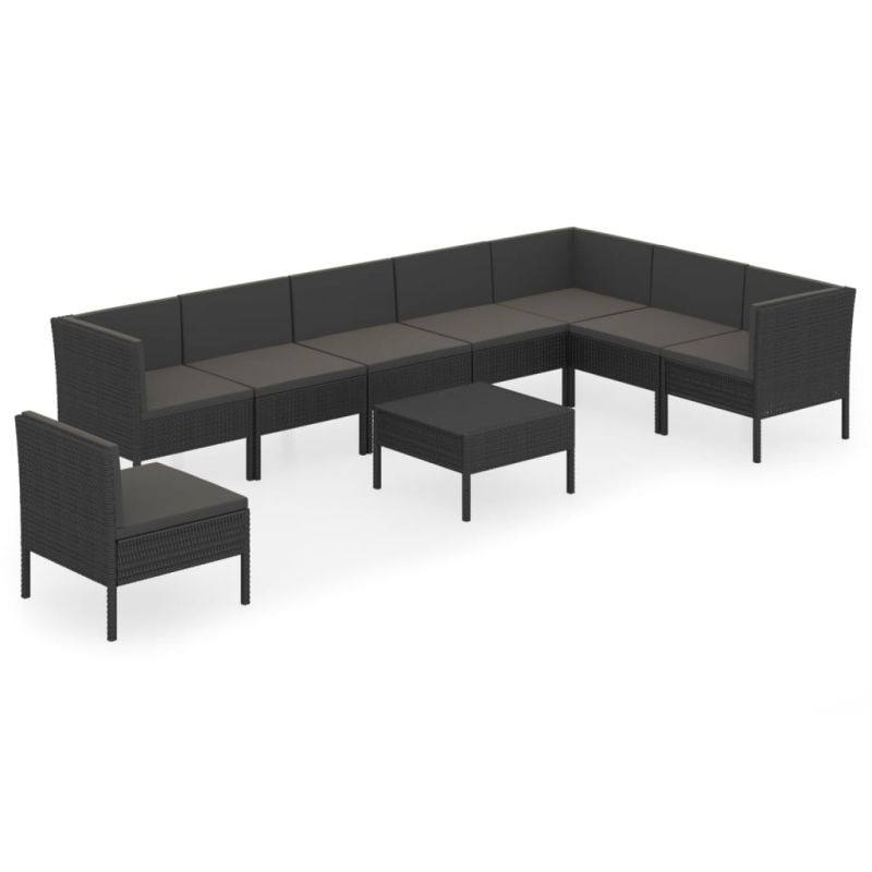 Градински лаундж комплект с възглавници 9 части полиратан черен