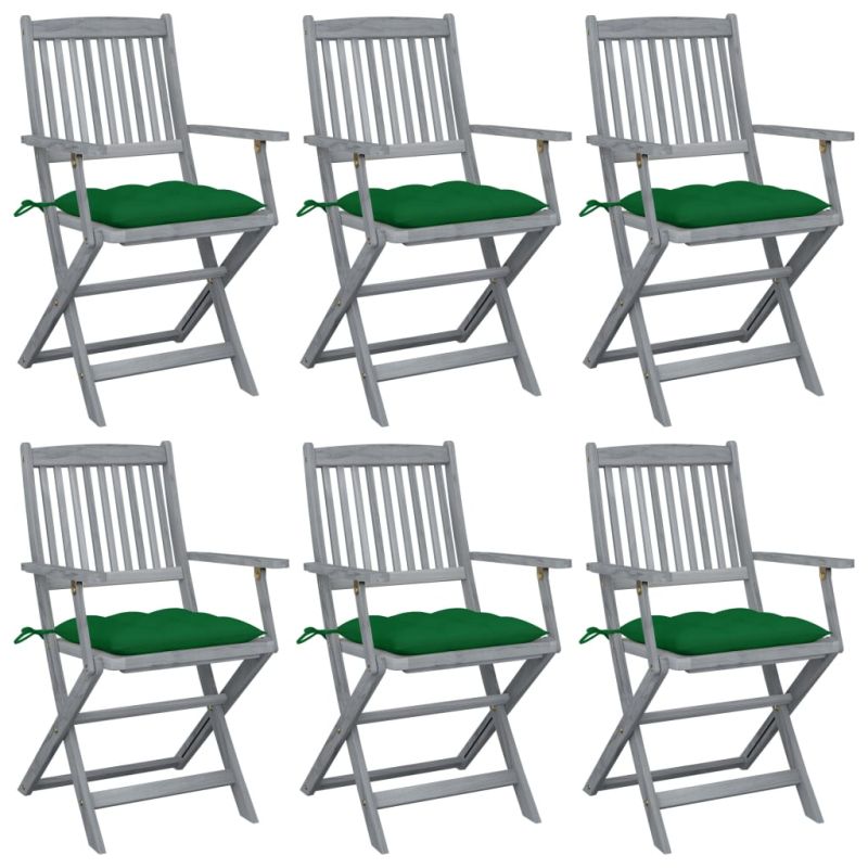 Сгъваеми градински столове, 6 бр, с възглавници, акация масив