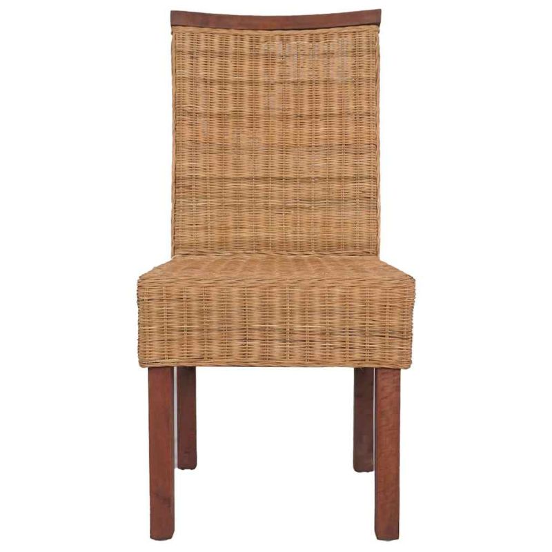 Този комплект трапезни столове от истински ратан с тропически вид и усещане разполага с декоративна лента от масивно дърво и ще бъде чудесно допълнение към вашия декор. Рамките от твърда дървесина и естественият ратан правят столовете не само здрави, но и естетически приятни. Седалките с покритие от истински ратан са много удобни. Ако търсите нещо, което да допълни декора на вашата кухня или трапезария, този атрактивен комплект ръчно тъкани столове ще бъде чудесен избор. Доставката включва 2 стола. Моля, обърнете внимание: Столовете са ръчно изтъкани от естествен ратан, поради което може да имат някои цветови вариации. Максимално 110 кг на седалка.