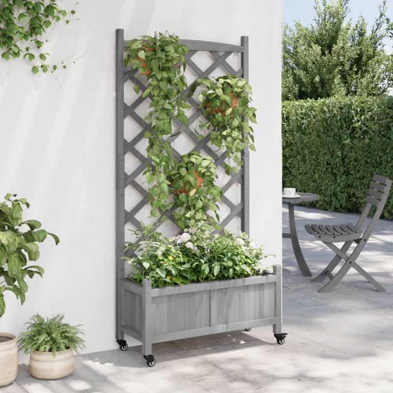 Начало Дом и градина Двор и градина Градина Саксии Кашпа с пергола и колелца, сиво, масивна ела