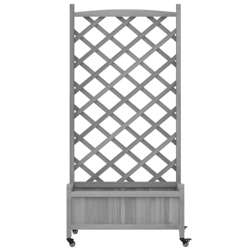 Кашпа с пергола и колелца, сиво, масивна ела