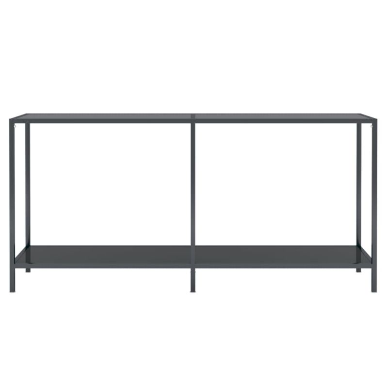Тази конзолна маса е идеален начин да придадете семпла, но същевременно стилна визия на вашето жилищно пространство. Здрава рамка: Тази странична маса е изработена от закалено стъкло и прахово боядисана стомана, което я прави изключително здрава и стабилна. Крайната маса се почиства лесно с влажна кърпа. Нещо повече, рафтът осигурява допълнително място за съхранение на най-важните неща.