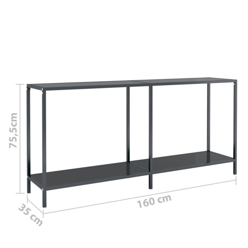 Конзолна маса, черна, 160x35x75,5 cм, закалено стъкло