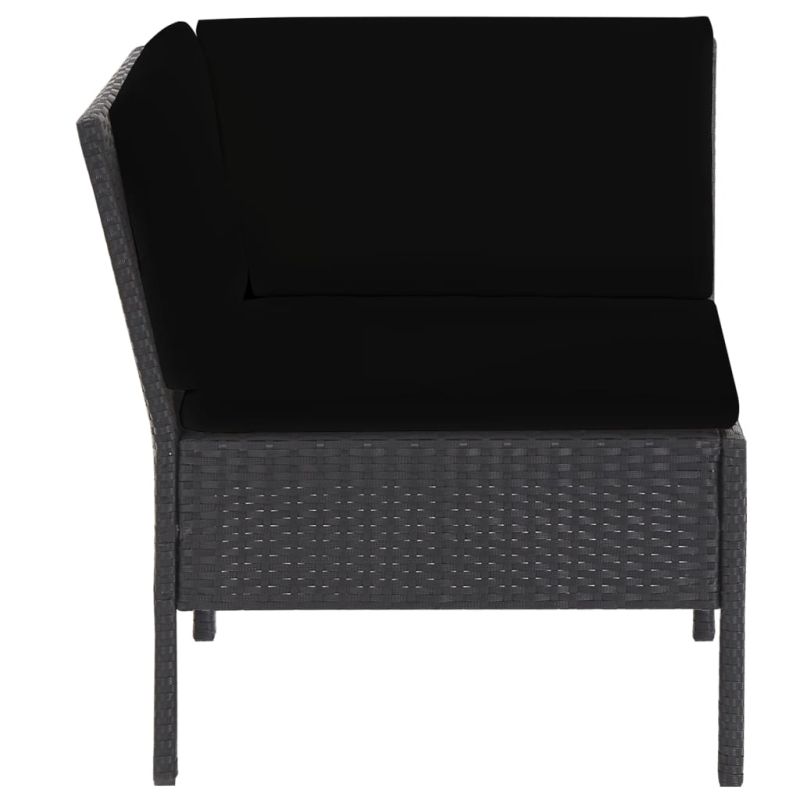 Градински комплект с възглавници, 6 части, полиратан, черен