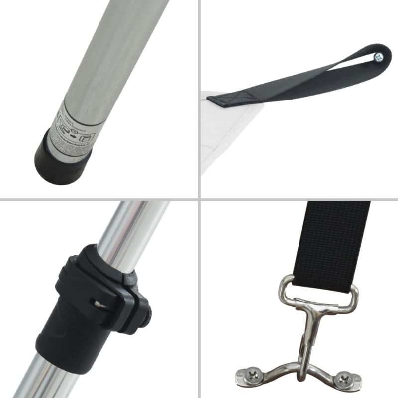 Притежавайки това удължение за сенник t-top, можете да се насладите на прохладен и комфортен ден на лодката си, без да се излагате на слънце. Издръжлив материал: Този удължител за сенник t-top е изработен от 100% полиестер с PU покритие, което го прави устойчив на UV лъчи, водоустойчив и устойчив на плесен за години на експлоатация.Здрава структура: Удължителят за сенник t-top има алуминиева рамка, което го прави здрав и стабилен.Лесен за използване: Този t-top удължител за сенник има 2 опорни стълба и ленти с щипки, така че можете лесно да регулирате височината според вашите изисквания.Широки приложения: Това удължение за сенник t-top е съвместим с широка гама навеси за лодки. Може да се използва на ски лодки, рибарски лодки и различни други плавателни съдове, стига горните части да са с подходящ размер. Добре е да се знае:Моля, използвайте чантата, за да предпазите тъканта, когато не използвате тентата за лодка и сгъвайте сенника, когато развивате скорост над 25 възела.