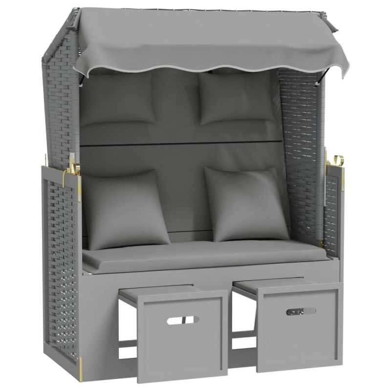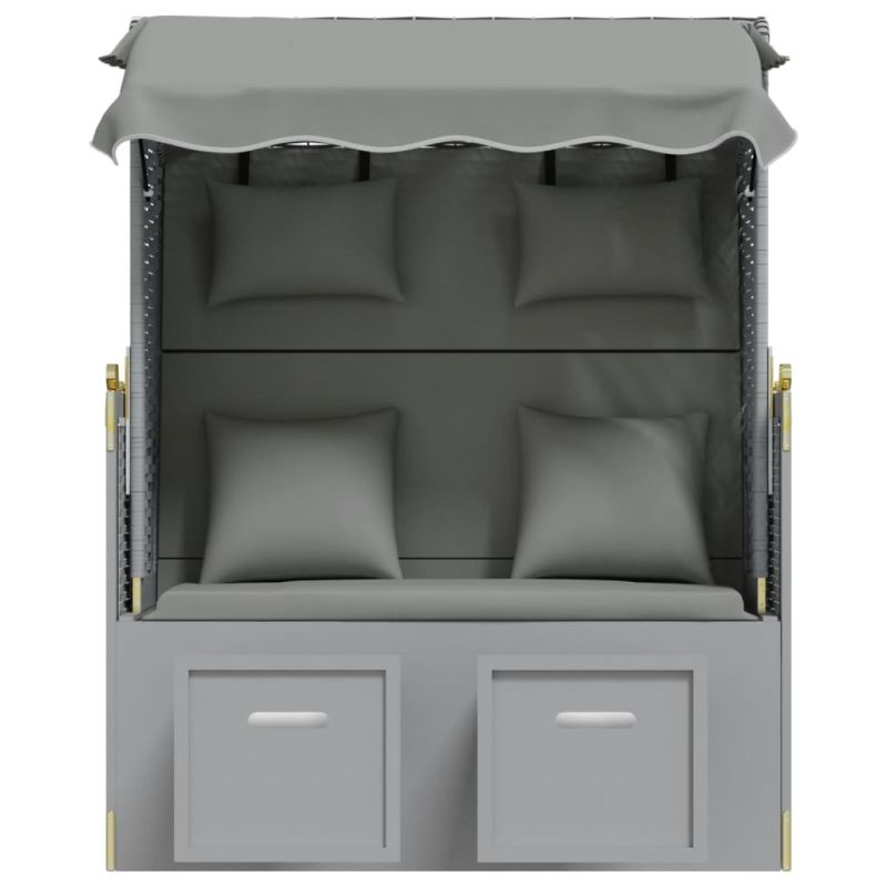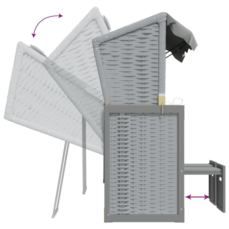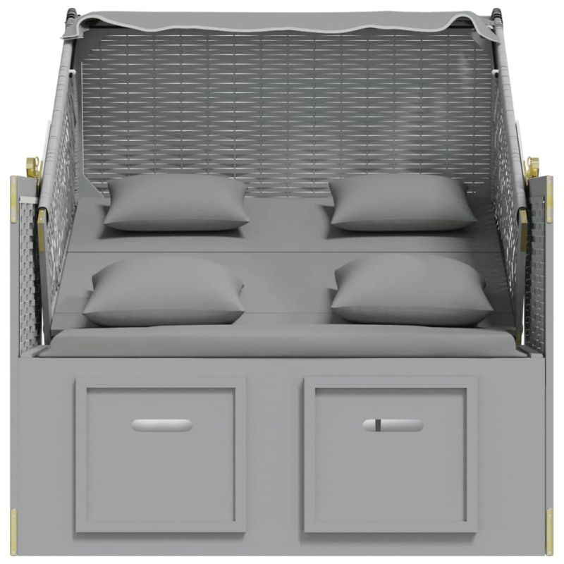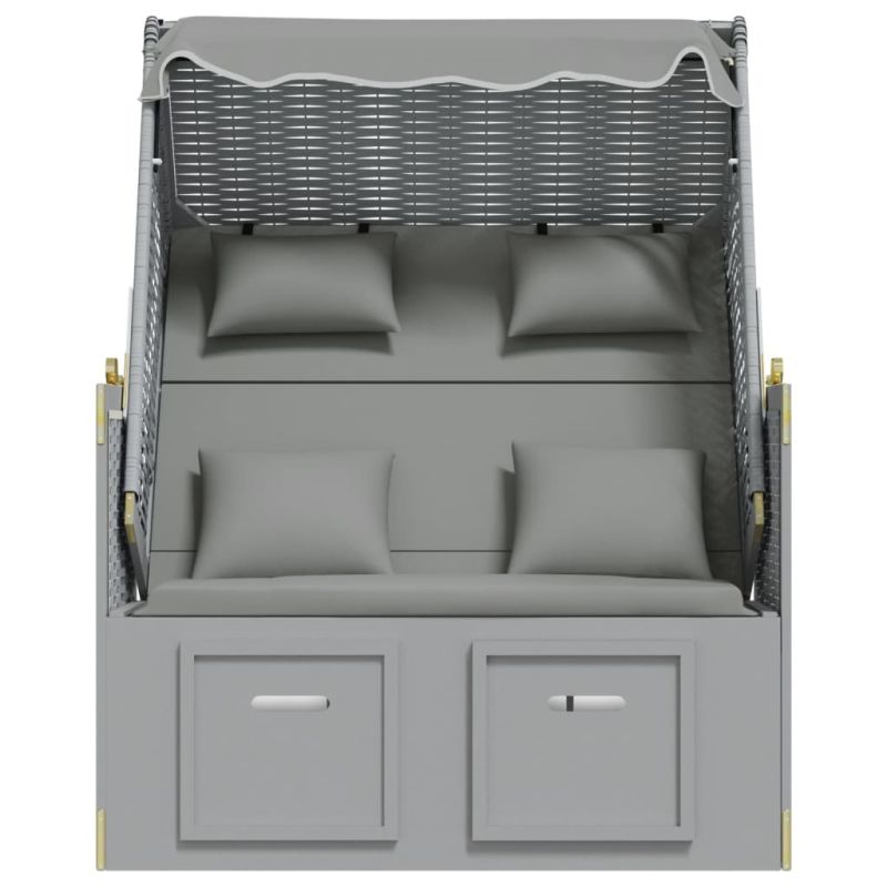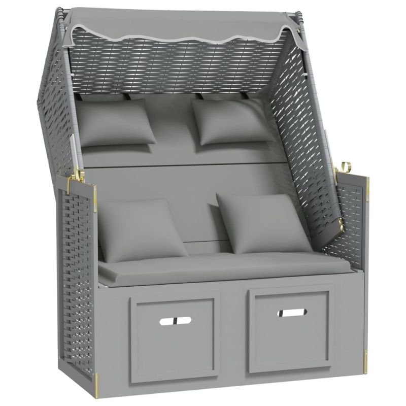 Strandkorb с възглавници, полиратан и масивно дърво, сиво