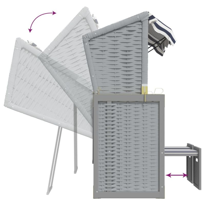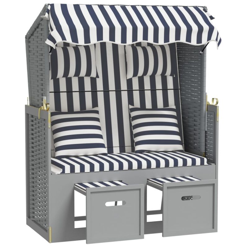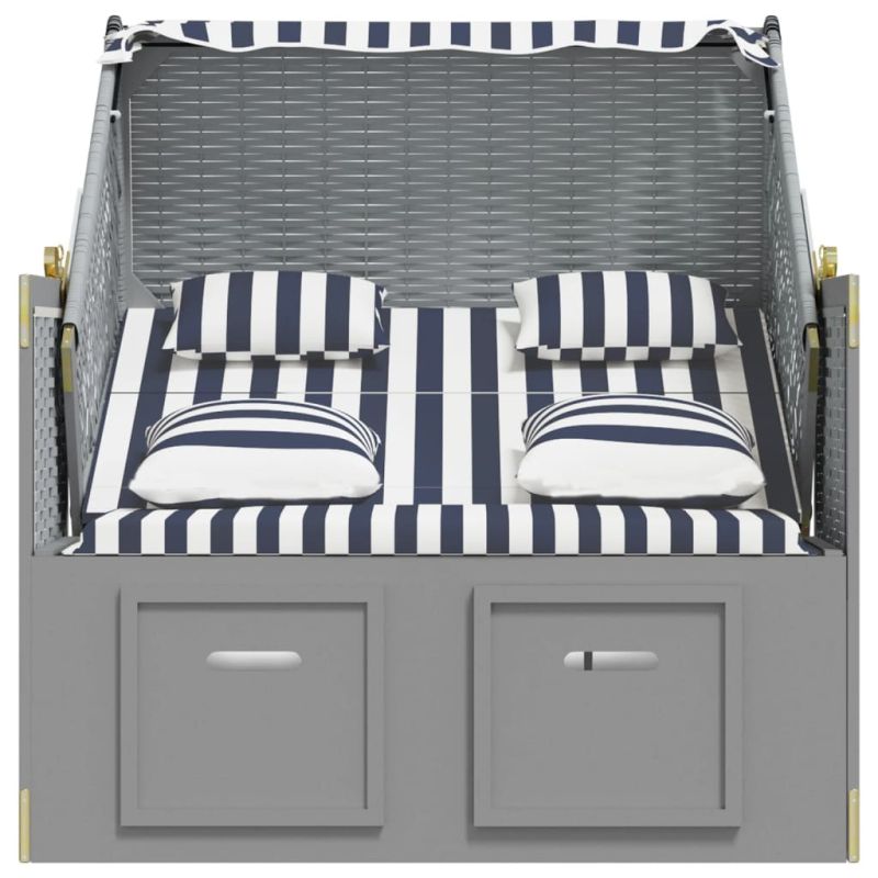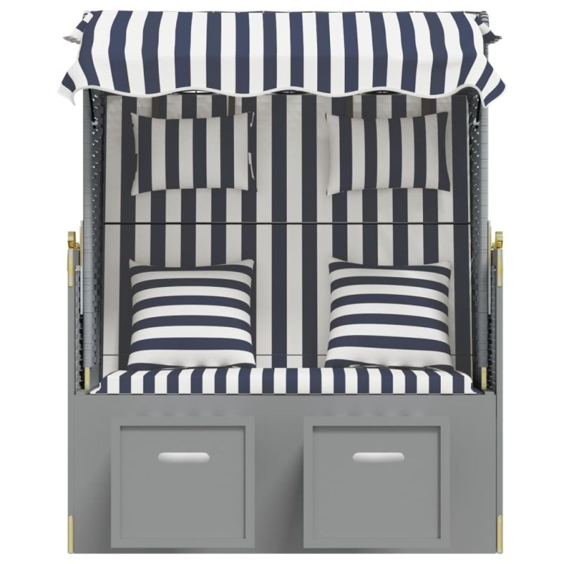 Strandkorb с възглавници, полиратан и масивно дърво, синьо/бяло