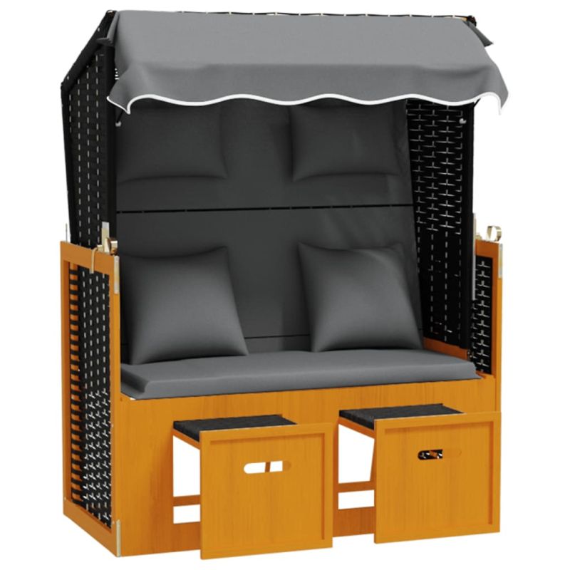 Strandkorb с възглавници полиратан и дърво масив черно/антрацит