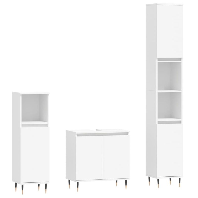 Комплект мебели за баня от 3 части, бял, инженерно дърво
