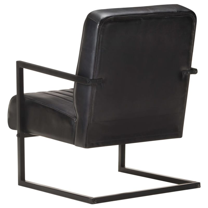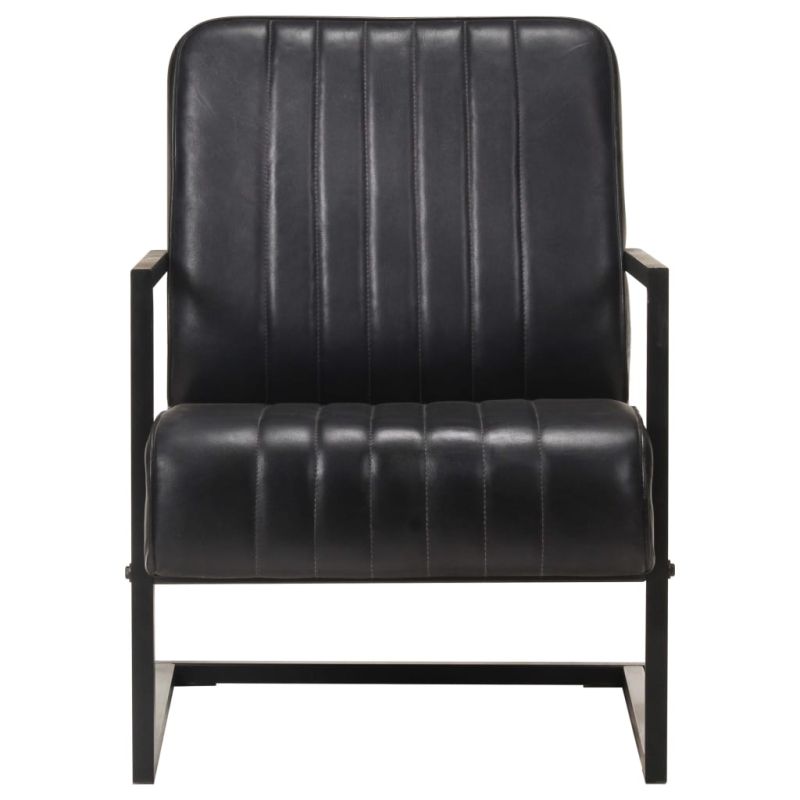 Този семпъл конзолен фотьойл с ретро дизайн е перфектната комбинация от стил и функционалност. Той може да привлича вниманието във вашия сегашен домашен интериор. Изработен от естествена кожа с черно покритие, този стол е мек на допир. Благодарение на плътно подплатената седалка и облегалка, този стол за телевизор е много удобен и лесен за почистване. Здравата желязна рамка с прахово боядисване също го прави стабилен и издръжлив. Максимално 110 кг на седалка. Съобразете се с риска от открит огън и други източници на силна топлина в близост до продукта.