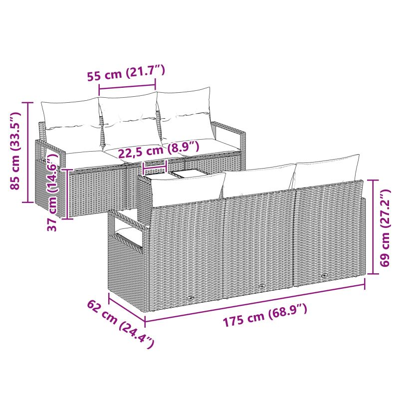 Този комплект градински диван е супер модерен и удобен, идеален за всяко открито пространство. Изработен от полиратан и с устойчива стоманена рамка, внася уют в градината или на терасата. Простият му дизайн с чисти линии е перфектен за незабравими моменти в компания. Материал полиратан: Комплектът е от висококачествен полиратан, който се справя с UV лъчите и е устойчив на износване, което го прави идеален за външни мебели. Въ woven текстурата е модерна и добавя стил. Подкрепа от стоманена рамка: Силната стоманена рамка осигурява стабилност и дълготрайност, така че да може да устои на всякакви условия. Функционални компоненти: С масата от закалено стъкло, лесна за почистване и устойчива на надрасквания, комплектът предлага и удобни места с подвижни калъфи, които се перат лесно. Съвременна естетика: Плоският дизайн и стълбовидните крака придават елегантен вид, който идеално се вписва в минималистични открити пространства. Инструкции за поддръжка: За да се удължи животът на комплекта, е добре да се използва покритие, когато не е на открито. Така се запазва добрият вид и стабилността на комплекта за години напред.
