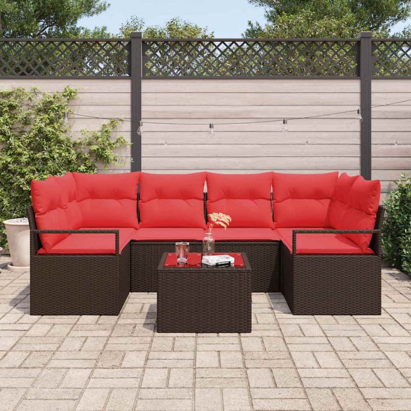 Начало Дом и градина Мебели Външни мебели Външно обзавеждане Градински дивани Комплект дивани 7 pcs Кафяво и червено полиратан