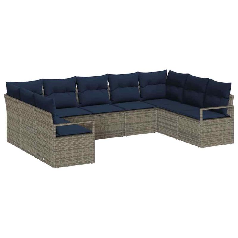 Комплект дивани с възглавница 9 pcs Сив полиратан