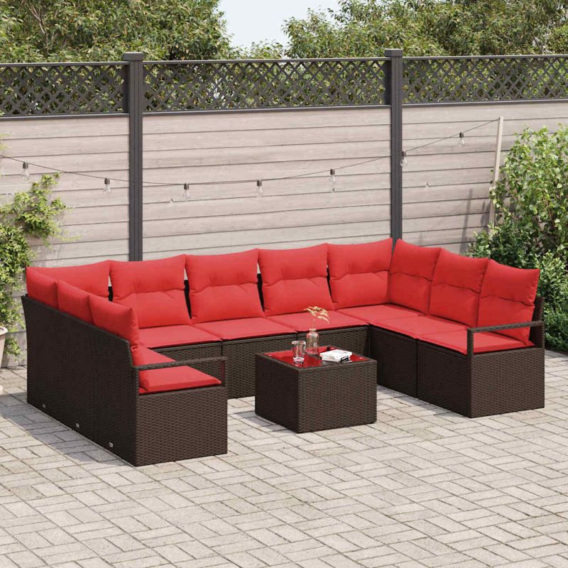 Комплект дивани с възглавница 10 pcs Кафяво полиратан