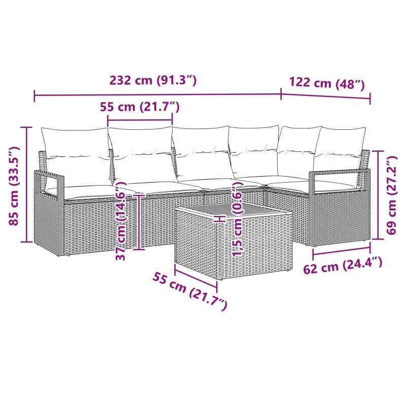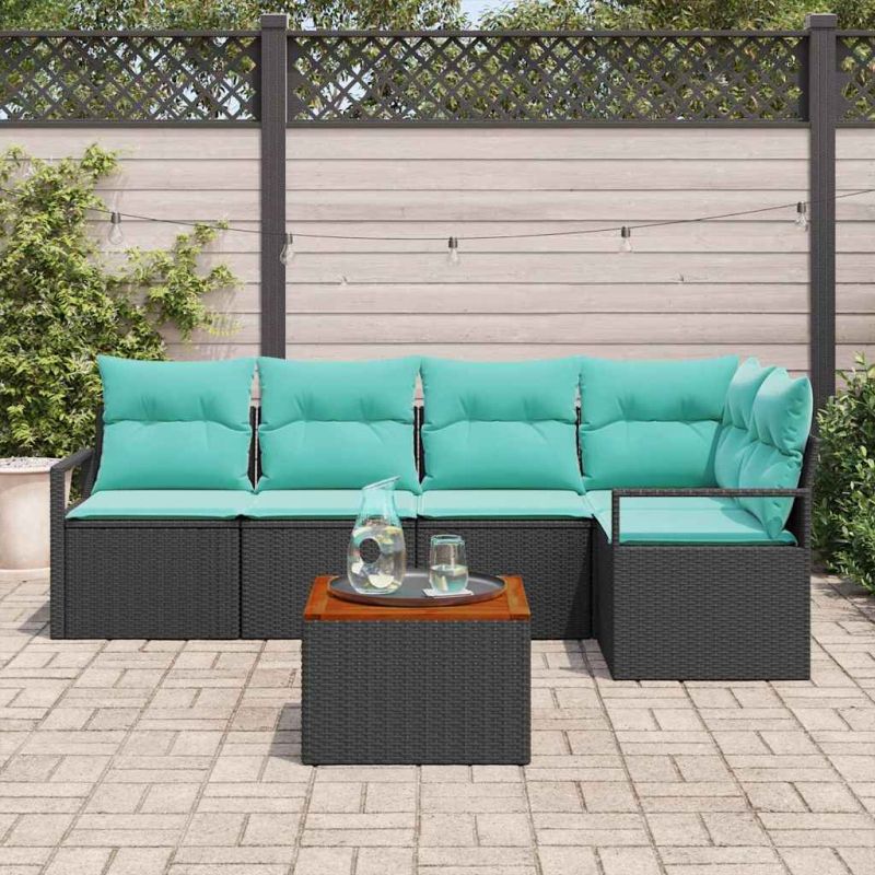 Градински Софа Комплект с възглавница 6 pcs Черно полиратан