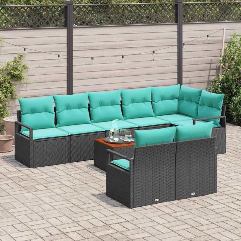 Градински Софа Комплект с възглавница 9 pcs Черно полиратан