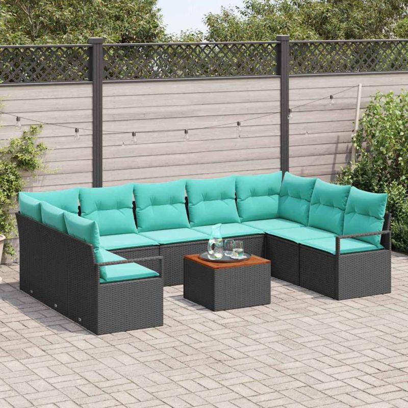 Градински Софа Комплект с възглавница 10 pcs Черно полиратан