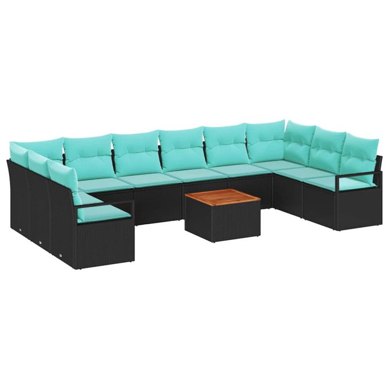 Градински Софа Комплект с възглавница 11 pcs Черно полиратан