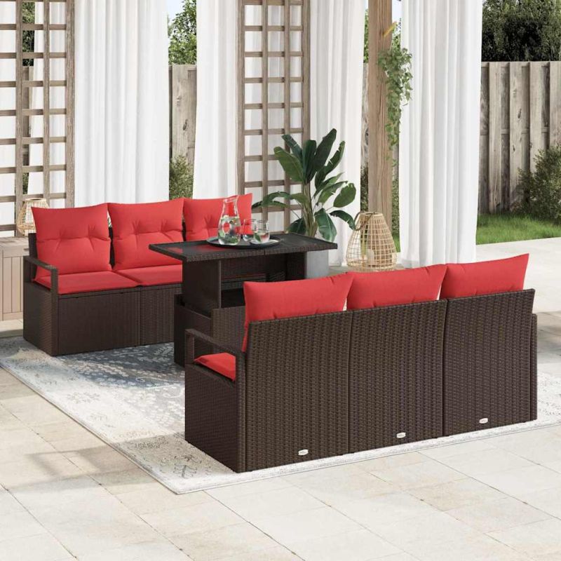 Градински Софа Комплект 7 pcs Кафяво и червено полиратан