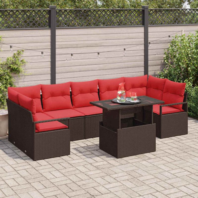 Градински Софа Комплект 8 pcs Кафяво и червено полиратан